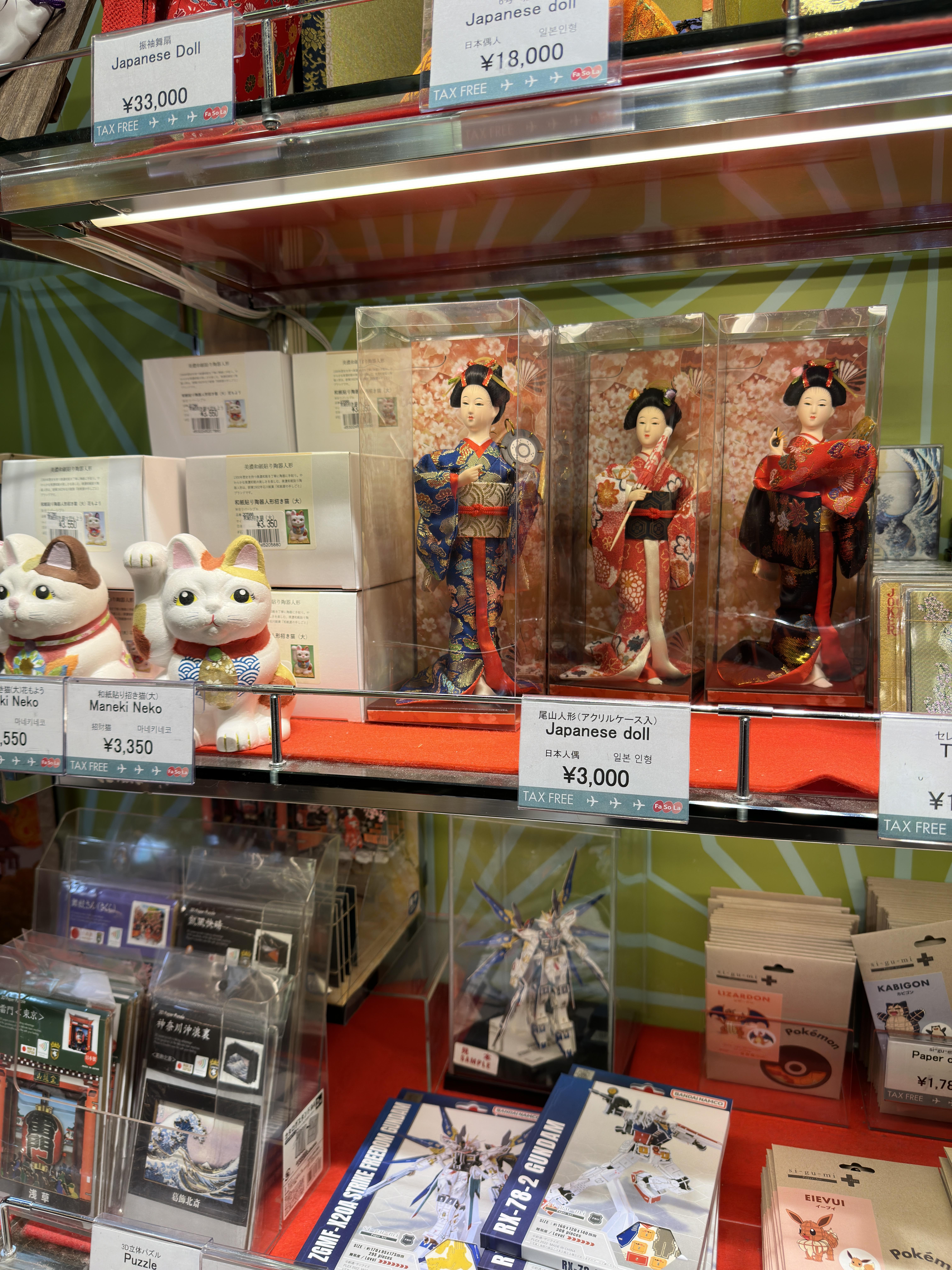 외국인들을 겨냥한 전통 상품들도 꾀나 많아요. 우리나라야 일본이 바로옆이니까 가면 실생활용품, 식품류 많이 사오잖아요 그런데 일본에서 만난 외국인들은 전부다 전통 굿즈들을 구경하더라구요. 심지어 돈키호테에서도 ^^~!